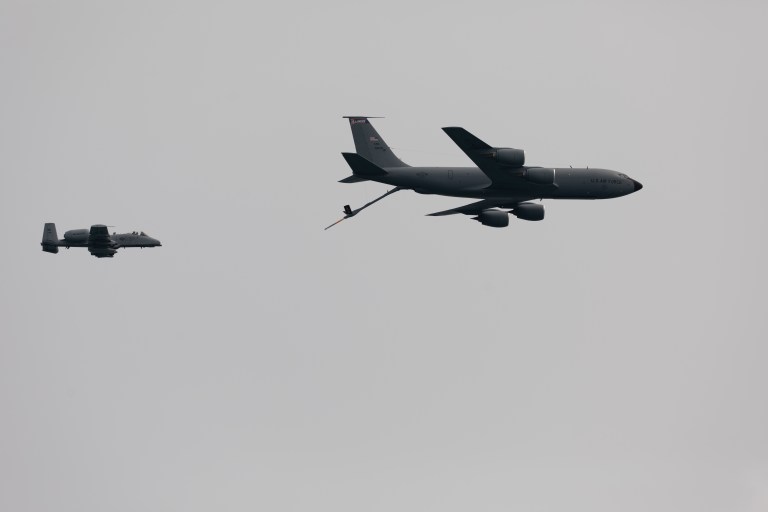 A pair of A-10 Warthogs performed impressive maneuvers followed by a mock mid air refueling demonstration with one of the A-10s following closely behind a KC-135 Stratotanker.