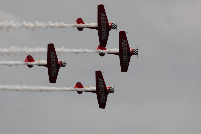 The Aeroshell Acrobatic team performed loops in tight formation with their colorful AT-6 Texans. These along with the P-51 Mustang mentioned above were the most impressive propeller driven planes.