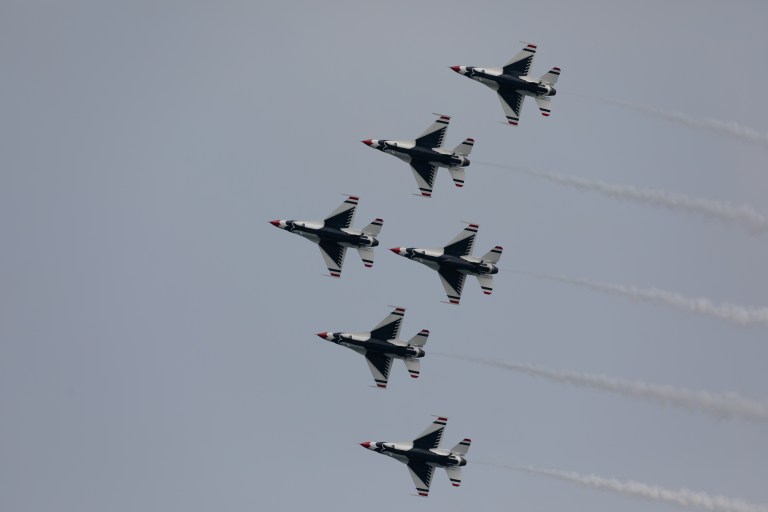 For the final act, The USAF Thunderbirds performed in impossibly tight formation with their F-16s.
